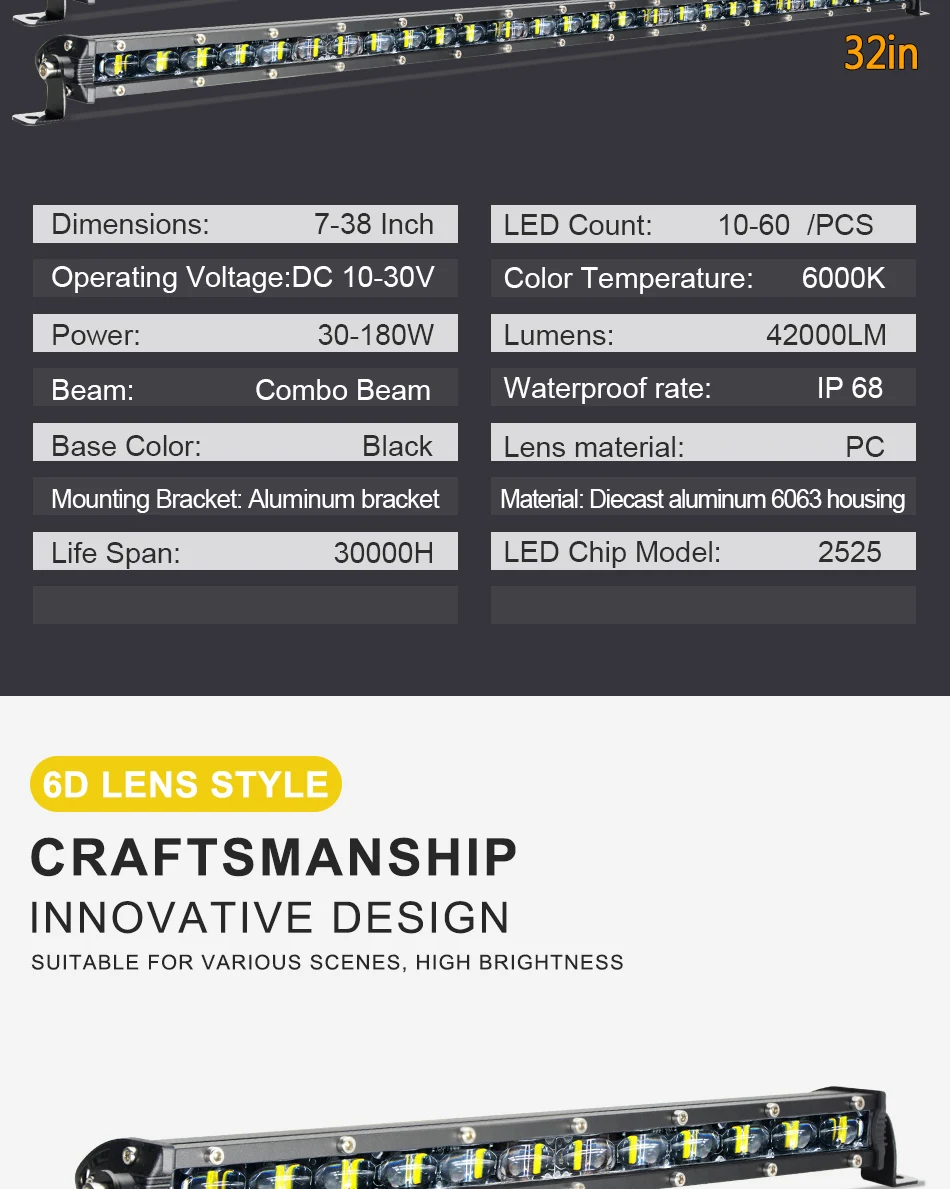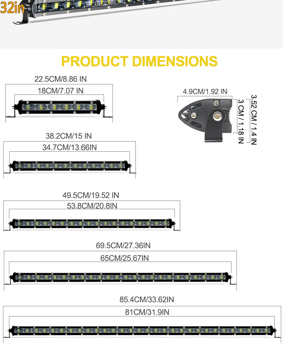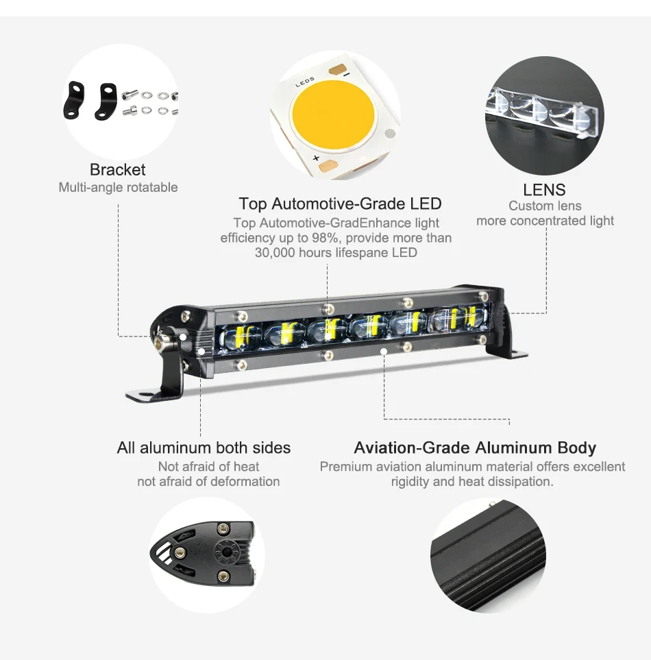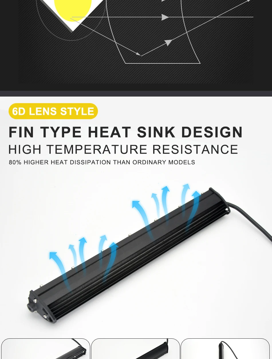 -Лучше рассеивания тепла: Быстрое Охлаждение Алюминиевый сплав радиаторы и качественные проводящая тепло система, силиконовый гель может эффективно продлить срок службы светильник бар до более чем 30000 часов