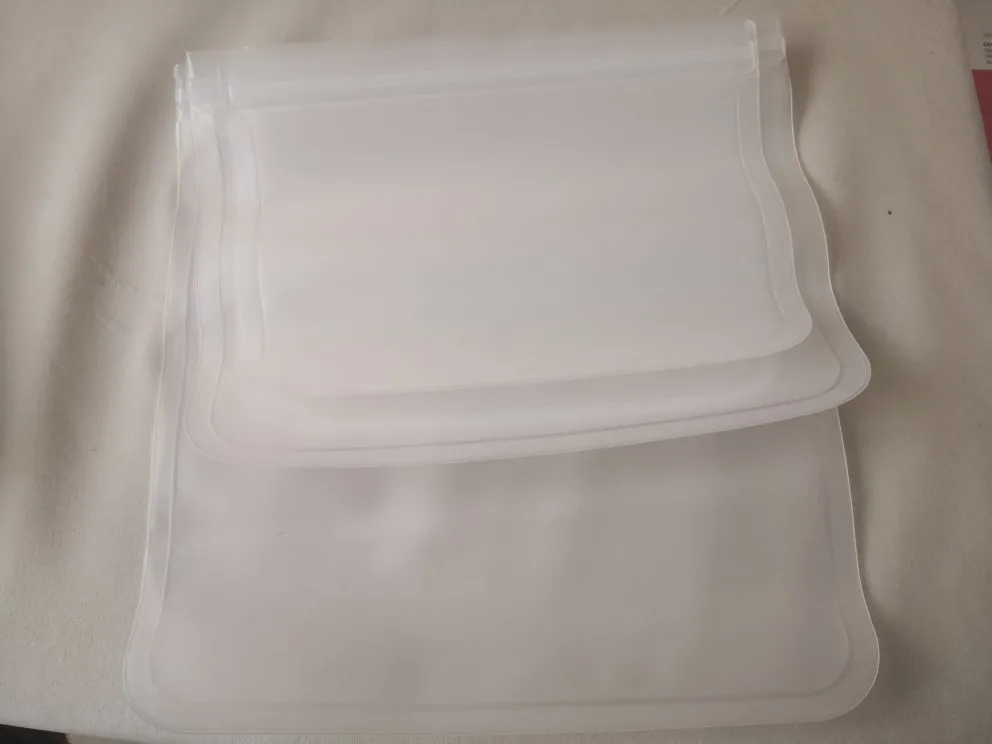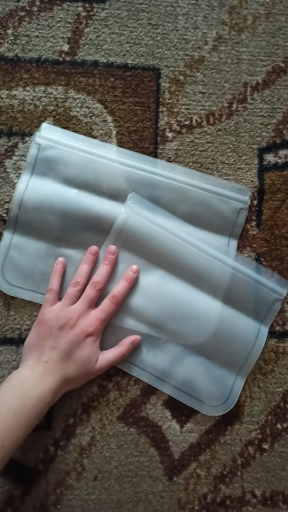 Вроде норм пакеты, молния не течёт хорошо закрывается. Есть ощущение, что это не силикон, но не могу это ни подтвердить ни опровергнуть. Собиралась использовать как многоразовые пакеты с возможностью мытья в посудомойке, но оказалось что они плоские и туда объемные предметы сложить трудно, в итоге упаковываю туда телефон и документы, чтобы от дождя спастись) Посудомойку переживают. От острых уголков предметов и черешков от яблок, остаются следы, надеюсь до сквозных дырок не скоро дойдёт)