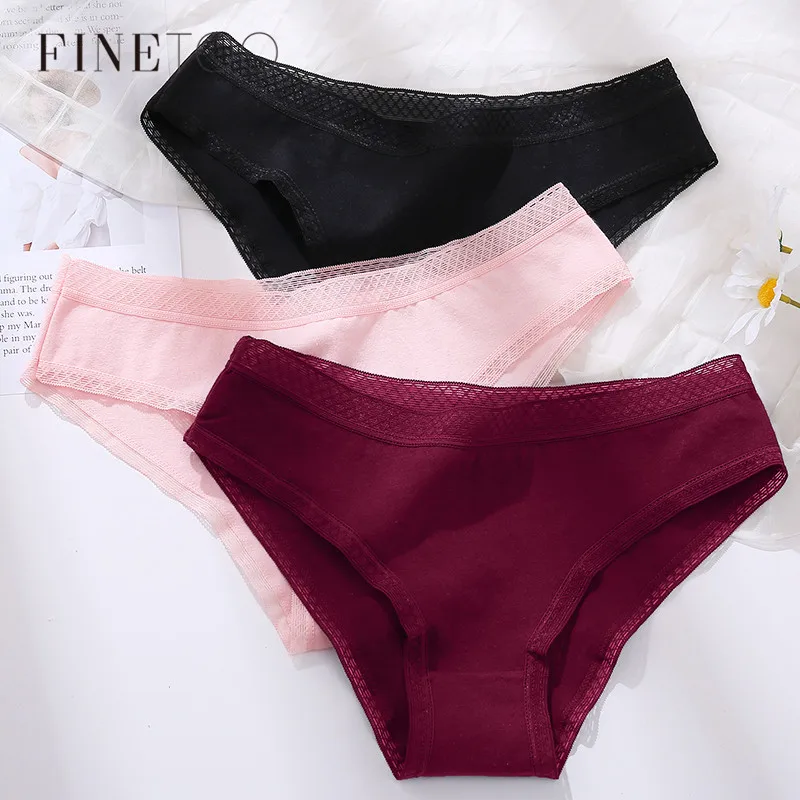 FINETOO, женские хлопковые трусики, сексуальные кружевные трусы, 3 шт. Компл., Женские трусы с низкой талией, удобное нижнее белье для девочек, M-2XL, женские трусики, нижнее белье