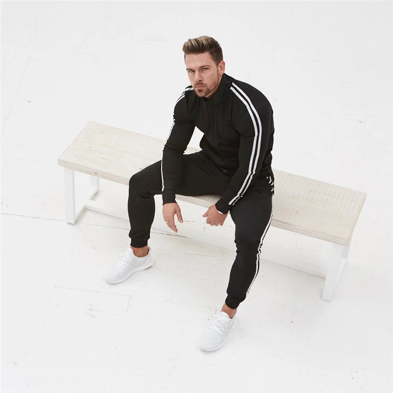 Мужской спортивный костюм с длинным рукавом и брюками, в полоску
