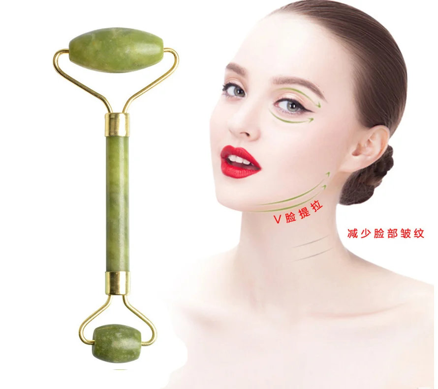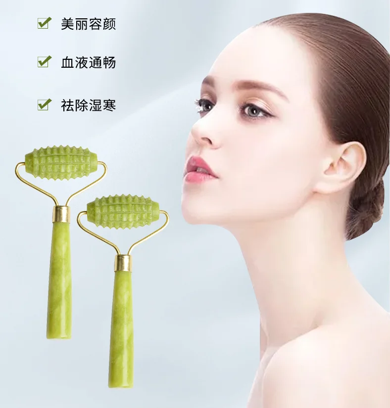 2021 ролик для массажа лица, доска Guasha с двумя головками, Нефритовый камень, подтяжка лица, расслабление кожи, похудение, красота, шея, тонкий подтягивающий