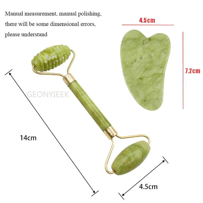 Массажер гуаша для лица с нефритовым роликом, набор для ухода за ко...