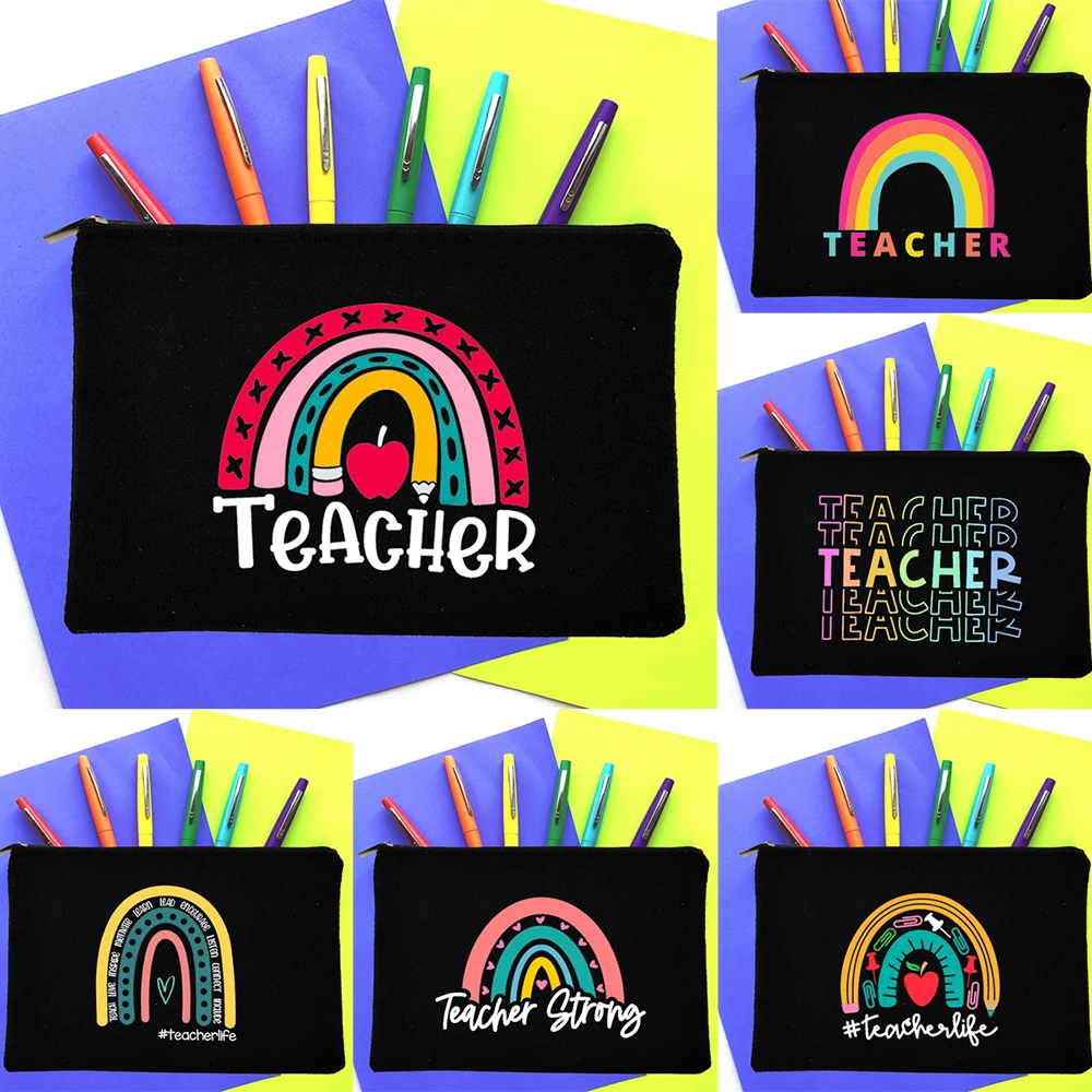 Женская Черная косметичка Радуга на молнии, офисный органайзер для карандашей, косметичка для путешествий, хранение губной помады