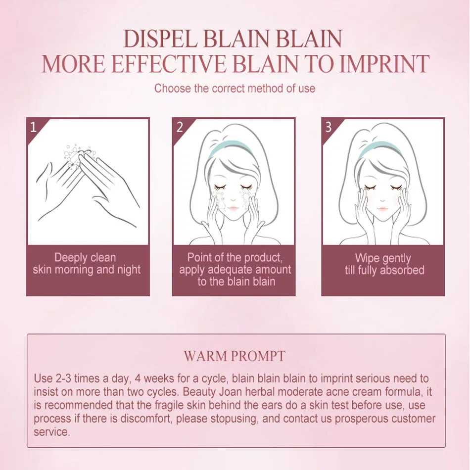 Используйте 2-3 раза в день, 4 недели в течение цикла, blain, чтобы запечатлеть серьезные потребности, настаивая на более чем двух циклах. Красота Joan травяной умеренный крем против акне формула, рекомендуется, чтобы хрупкая кожа за ушами сделать тест на кожу перед использованием, использовать процесс, если есть дискомфорт, пожалуйста, остановить, И свяжитесь с нами, мы обеспечим процветающее обслуживание клиентов.