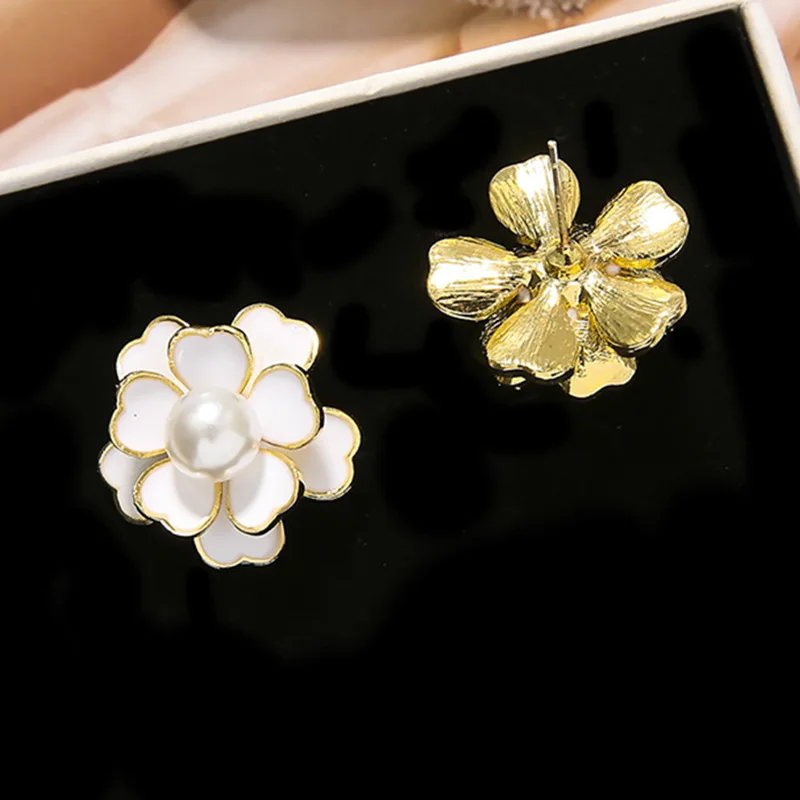 Серьги-гвоздики в виде камелии, инкрустированные жемчугом, модные очаровательные женские серьги, подарок на День святого Валентина для друзей-партнеров