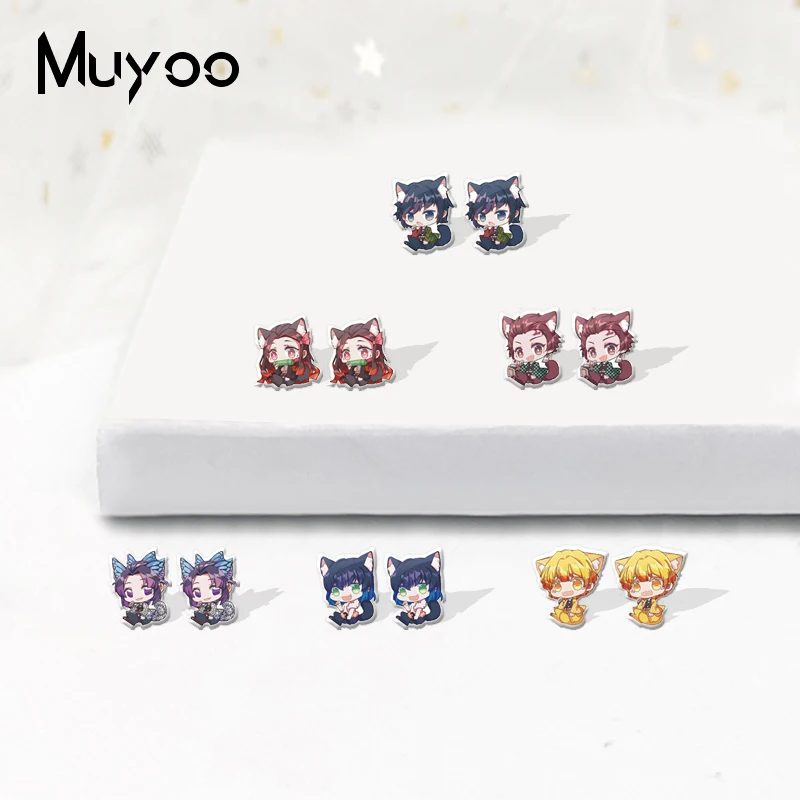 Серьги-гвоздики из акрила и эпоксидной смолы, аниме Kamado Tanjirou...