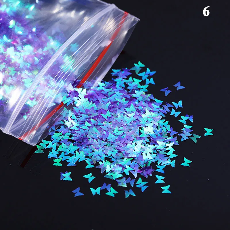 Бабочка блестящая Фольга для дизайна ногтей хлопья 3D лазерная голографическая DIY искусство ногтей блестки