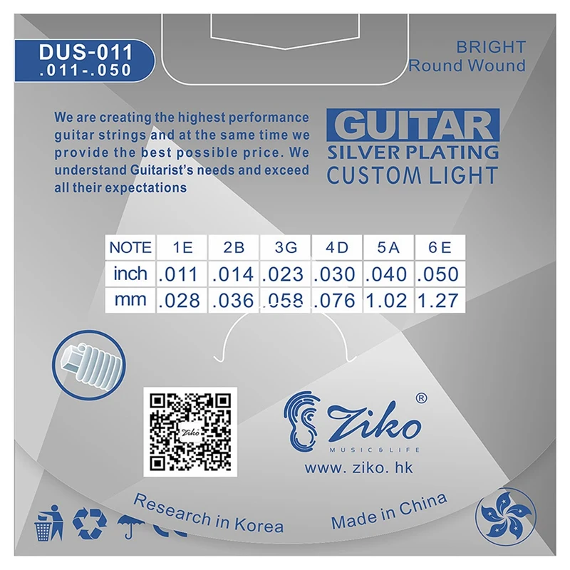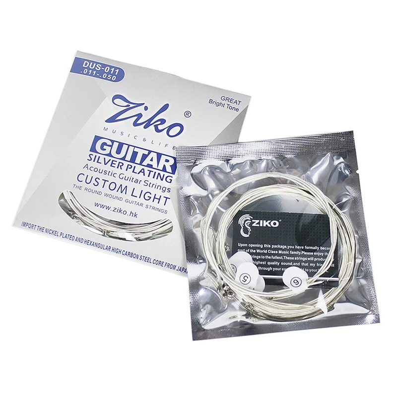 Струны для акустической гитары серии Ziko Dus, шестигранная сердцевина из углеродистой стали, Посеребренная обмотка