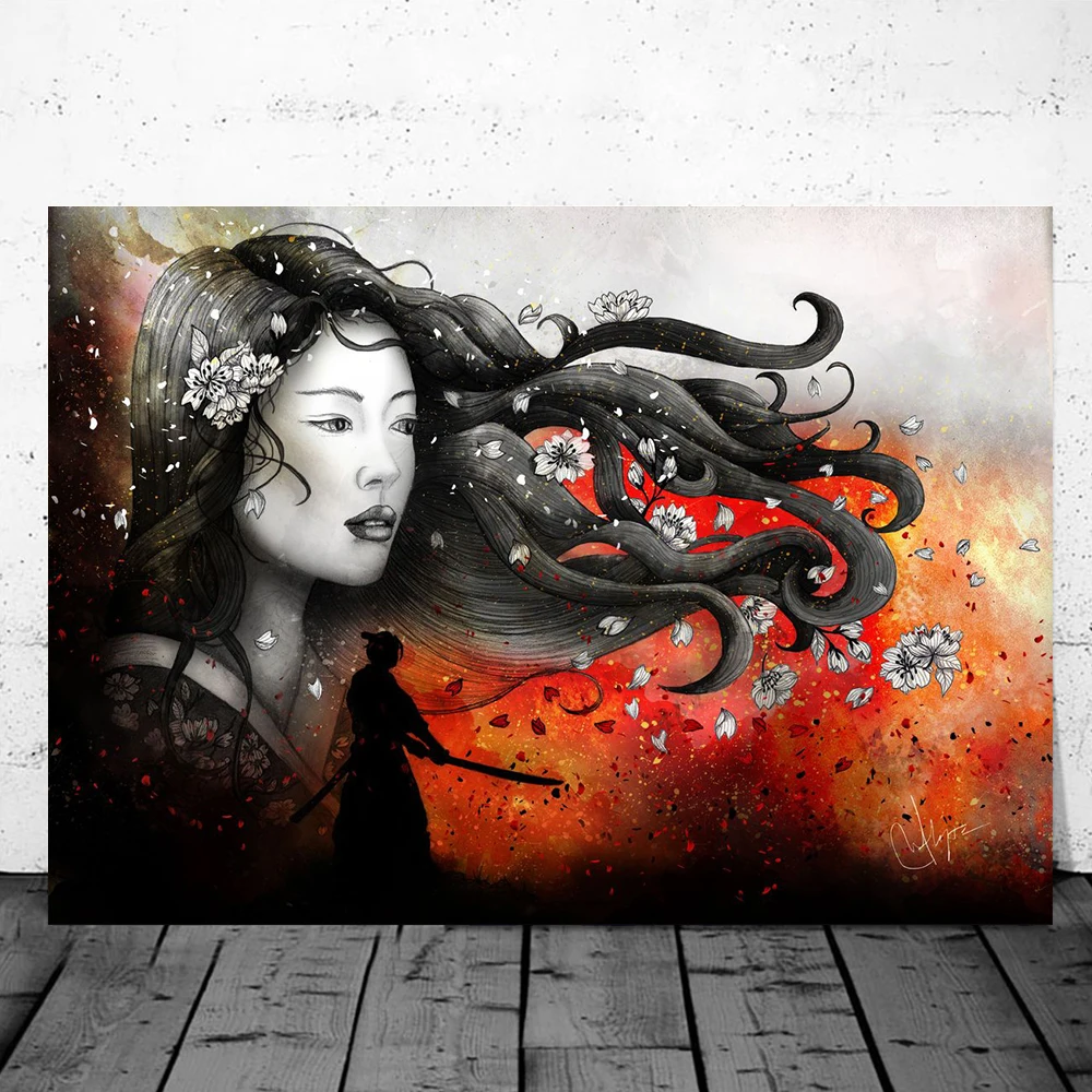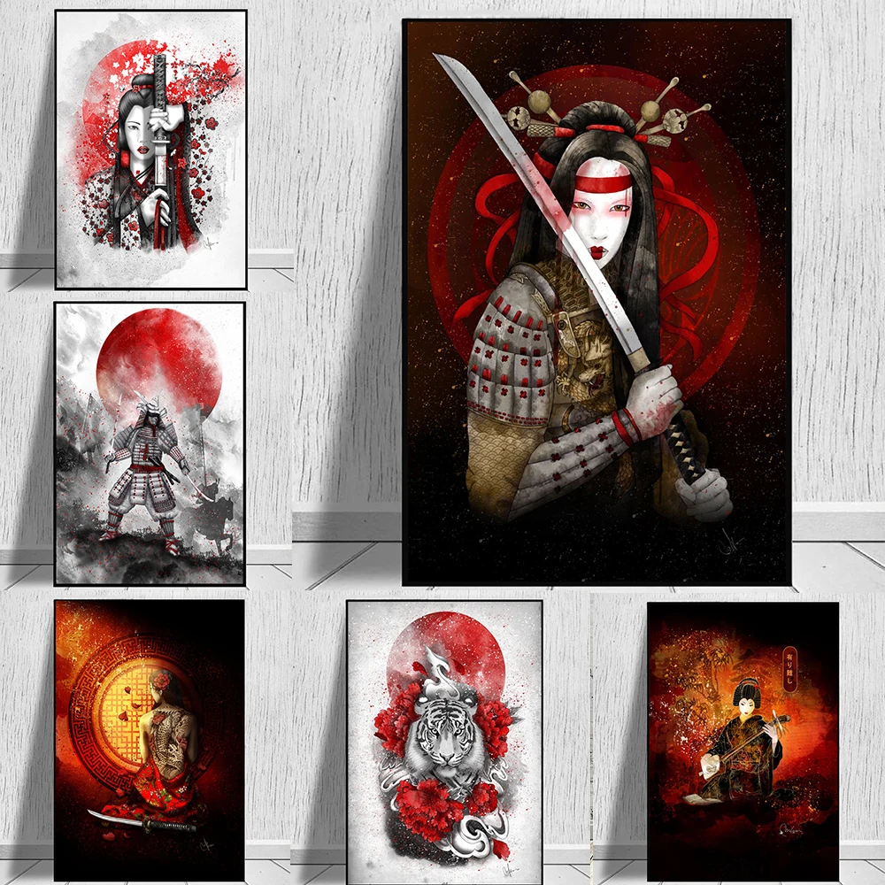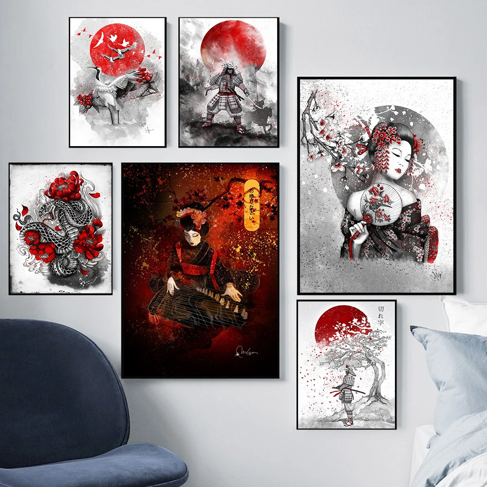 Японская печать на холсте дзен чернила бонса бусхидо Самурай художественный масляный плакат гейши и печать животных картина для комнаты роспись декор стен
