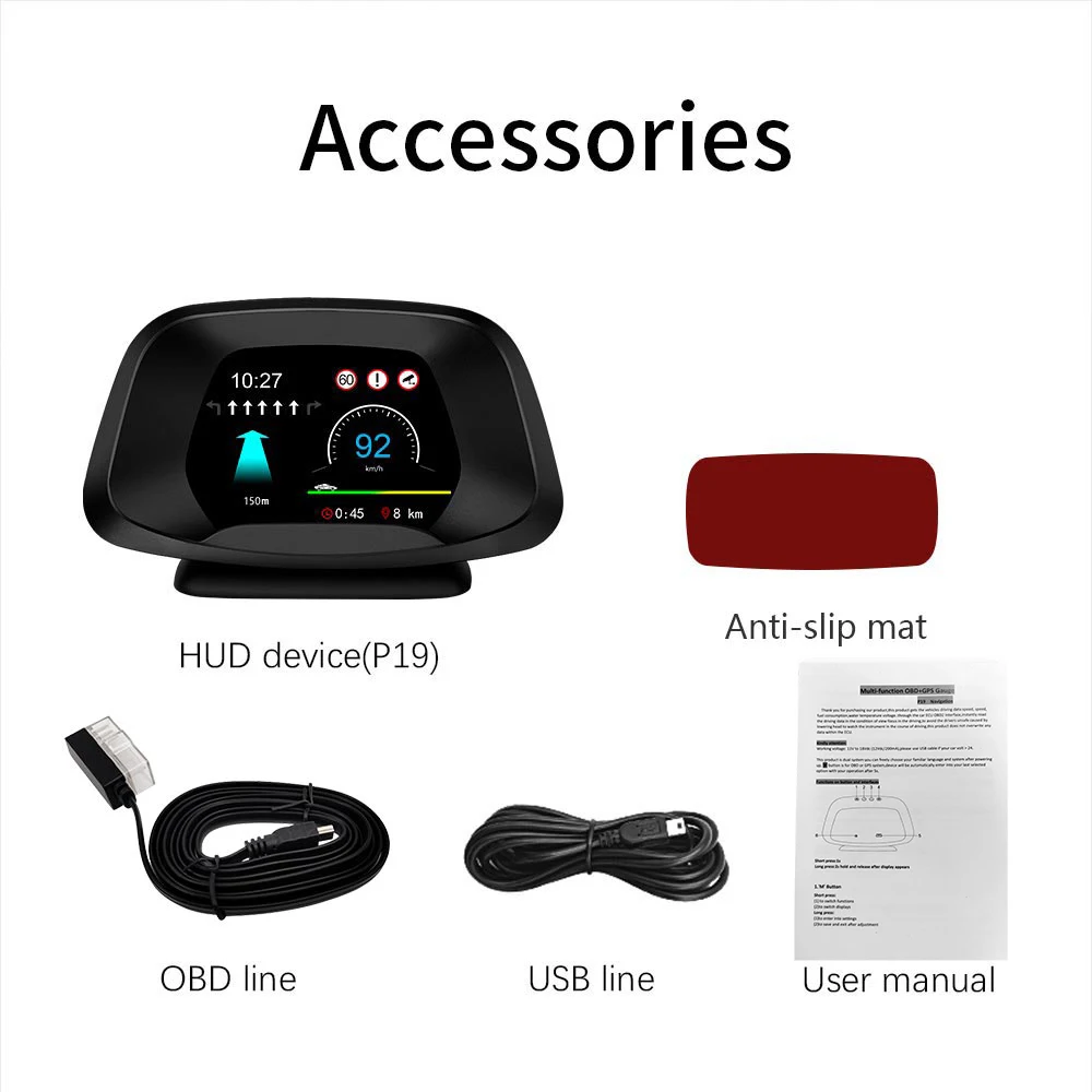 Проектор скорости P19, тестер турботормоза, дисплей HUD на лобовом стекле, гаджеты с сигнализацией, цифровой измеритель GPS, сканер OBD2