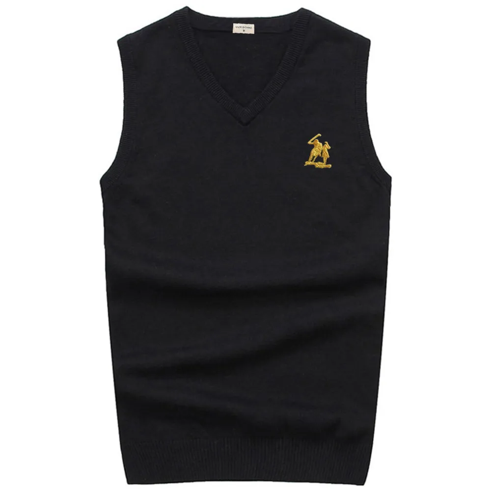 Мужской свитер-поло с вышивкой логотипа Big Horse, осенне-зимний повседневный деловой жилет из 100% хлопка с V-образным вырезом