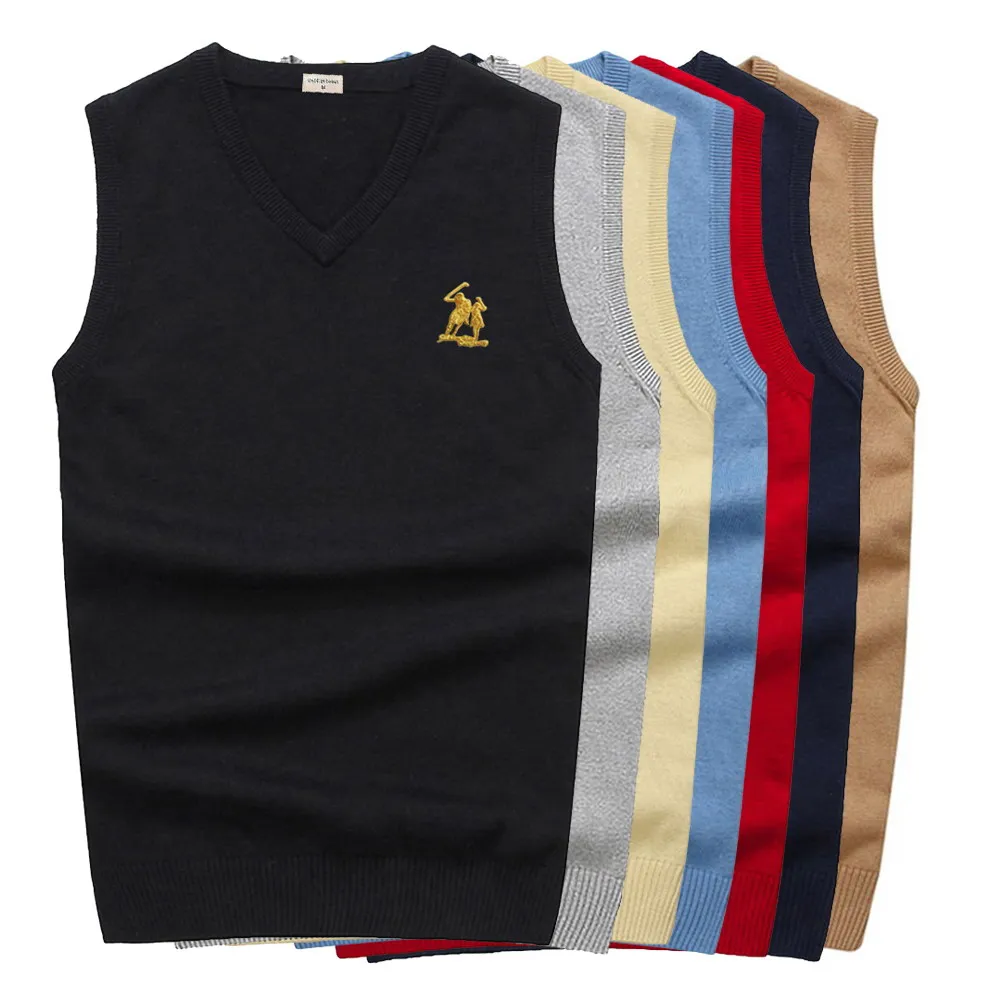 Мужской вязаный жилет без рукавов, Повседневный свитер из 100% хлоп...