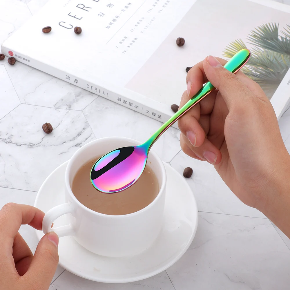 Набор золотых ложек, 4 шт., серебряный золотой набор, чайная, кофейная ложка маленьких 1810 ложек из нержавеющей стали с покрытием для десертов