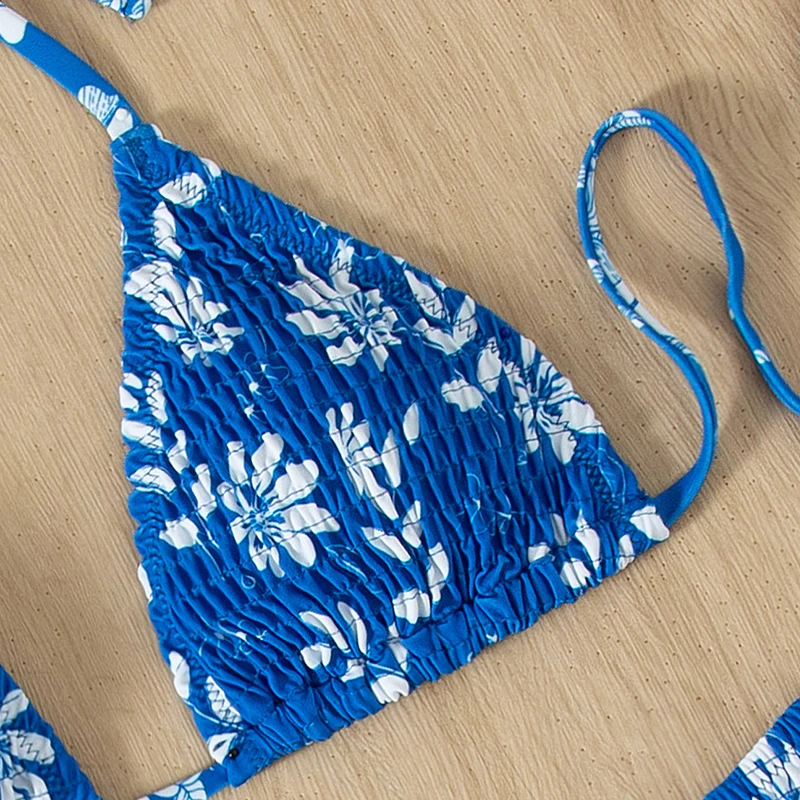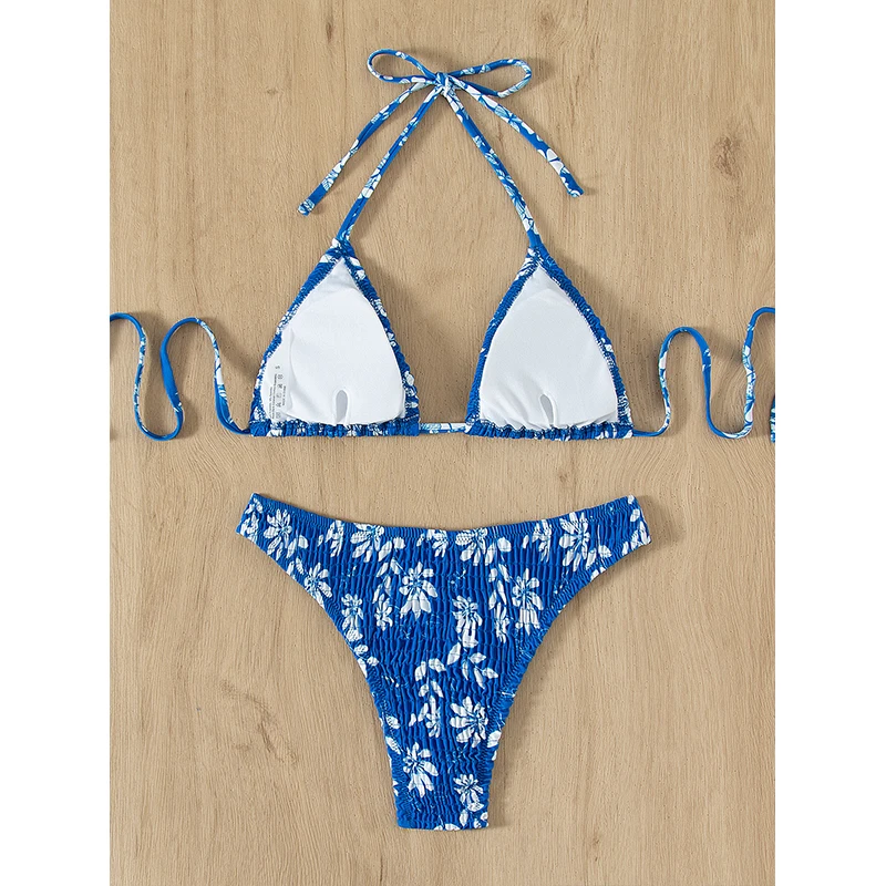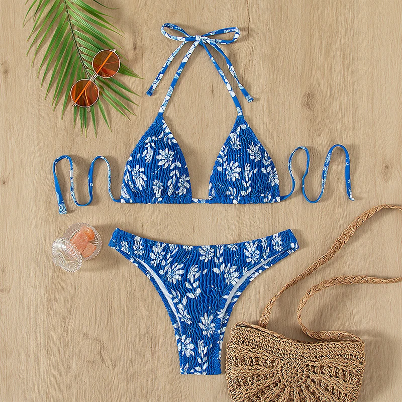 Купальник-бикини женский треугольный с высоким вырезом и принтом