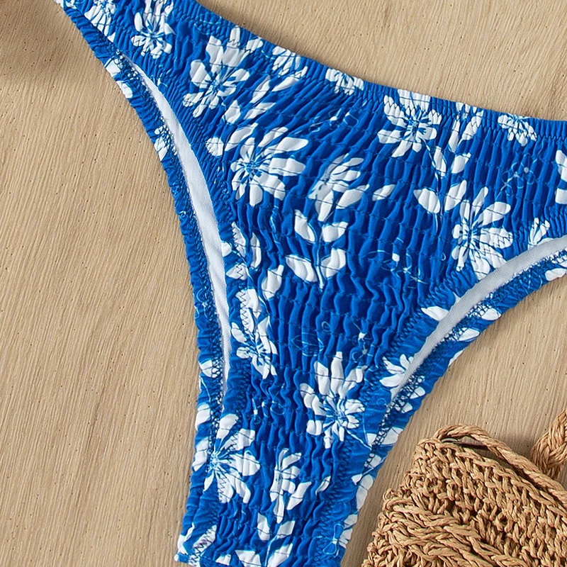 Купальник бикини с цветочным принтом и рюшами, женские купальные ко...