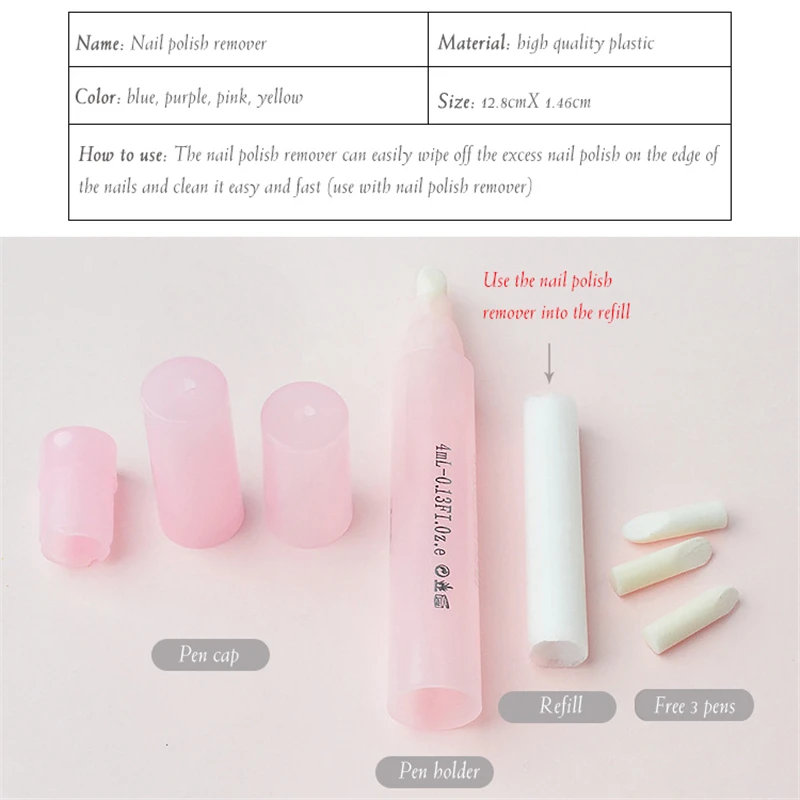 Новинка, 4 цвета, искусственная ручка с 3 наконечниками, средство для удаления лака, корректор ластика, ручки, средство для УФ-маникюра
