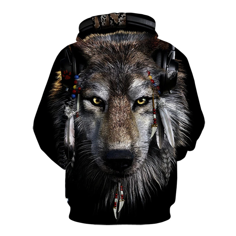 Толстовка Мужскаяженская оверсайз с капюшоном и 3D-принтом волка