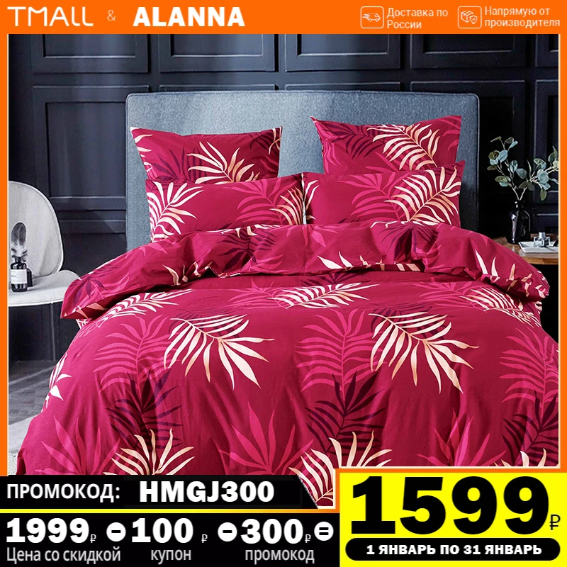 постельное бельё Комплект постельного белья Аланна TZ1022 1,5 2-x спальный Евро Семейный, хлопок, наволочки 50x70, 70x70