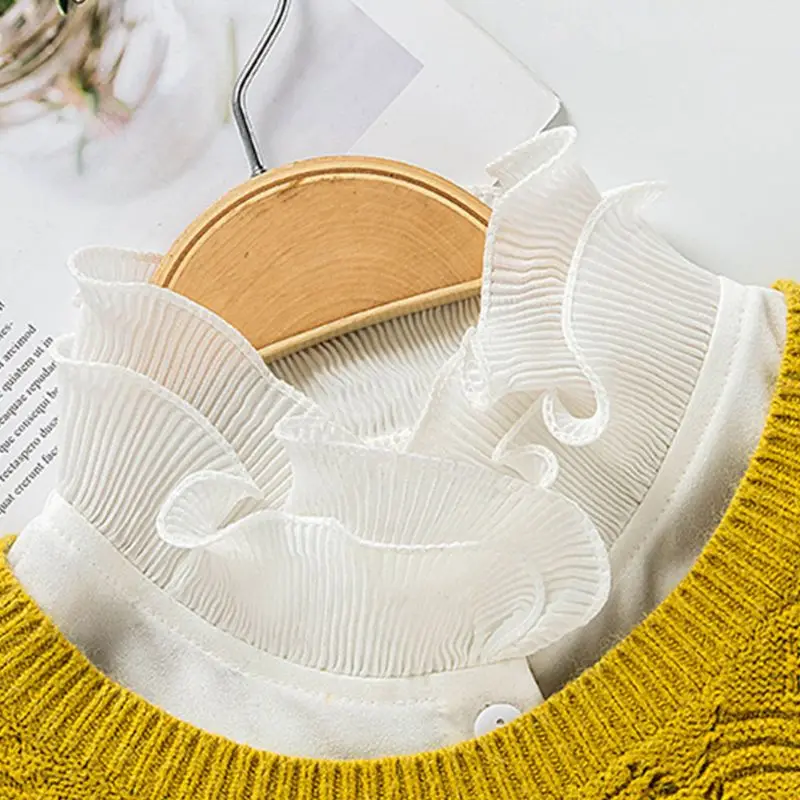 Милая двухслойная шифоновая Съемная полурубашка с воротником-стойкой и рюшами