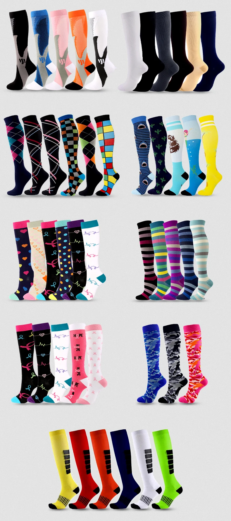 Какой уровень выбрать?Первый уровень (20-30 мм рт. Ст.): подходит для профилактики здоровья у людей. Например, учители, сотрудники ГИБДД, медсестры, доктора, косметологи, торговые гиды и т. д., и эти носки также подходят для ранних симптомов, таких как венозные сосуды с небольшой нижней конечностью, стоя слишком долго, ощущая болезненностьУровень 2 (30-40 мм рт. Ст.): для тех, кто имеет очевидные признаки в нижних конечностях и сопровождается дискомфортом ног (например, боль в конечностях, усталость, отеки и экземы, судороги, покалывание, пигментация, И т. Д.), флебит, беременность, после эксцизии вены, и синдром тромбоза глубоких вен.Уровень 3 (40-50 мм рт. Ст.): подходит для людей с высокими отеками, затемненной кожей и необратимыми лимфемами.Почему все больше и больше людей любят носить компрессионные носки сейчас?Независимо от того, являетесь ли вы спортсменом, который хочет преуспеть в игре, который сидит долгое время во время путешествий или на работе, или кто-то, кто борется с болью из-за хронического состояния, поддержка правильного кровотока на ноги имеет первостепенное значение. Наши компрессионные носки разработаны с новейшей технологией сжатия от свода до икры, Обеспечивает поддержку голени и мышц ног, помогает сохранить приток крови, чтобы повысить атлетические показатели и облегчить боль из-за ряда условий.Снижает риск травмОбеспечивает дополнительную компрессионную поддержку для стабилизации свода, лодыжки и мышц. Минимизирует колебания мышц и micro-tearing.Prevents спазмов и травм. Усиленная поддержка может предотвратить травмы из-за плохой силы мышц, особенно во второй половине марафона.Улучшает вашу производительностьДля спортсменов на выносливость ключевым механизмом является «икроночный мышечный насос»-с каждым шагом или педальным ударом, сжимающий и разжимающий телячьи мышцы сдавливает кровь обратно к сердцу. Наши компрессионные носки обеспечивают дополнительное сжатие, которое усиливает это действие накачки, ускоряя поток очень необходимого кислорода для работы мышц. Ускоряет кровообращение к сердцу и избавляет от метаболических отходов от мышц.Помогает быстрее восстановитьсяСтимулирует кровоток и улучшает доставку кислорода в ваши мышцы. Уменьшает выработку молочной кислоты, мышечную болезненность и чувство тяжеловесности в ногах и ногах. Более быстрое восстановление от «задержки начала мышечной болезненности».Помогает предотвратить или снять отекиПомогает контролировать отек через улучшенную циркуляцию и ускоряет удаление клеточных отходов. Уменьшает отеки и усталость от длительного сидения или стоя. Идеально подходит для беременных женщин и тех, кто сидит или стоит в течение длительного периода во время путешествий или на работе.Помогает облегчить боль в подошвенном фасциитеРазработан с компрессией, чтобы помочь в управлении болью и облегчении от подошвенного фасцита, пятки шпоры и боли в суставах. Помогает при стоянии и ходьбе. Сжатие связок уменьшит воспаление, ускоряя процесс заживления.Которые могут извлечь выгоду из компрессионных носков:1. Беременная женщина2. Спортсмены и активные люди занимаются спортом, бегом, пешим туризмом, велоспортом, футболом и т. д.3. Частые путешественников или тех, кто летает на длинном самолете4, рабочие места, которые требуют от вас быть на ногах много: медсестры, учи