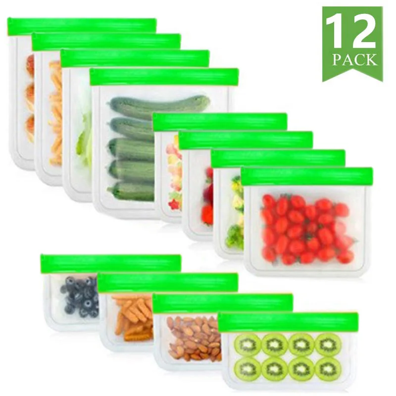 15 шт.компл. силиконовых пищевых пакетов, пакет для сохранения пищевых продуктов, герметичный пакет для фруктов и овощей, герметичный пакет для хранения пищевых продуктов на застежке