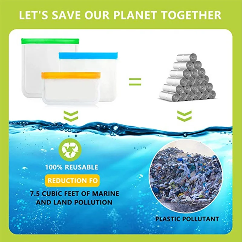 3. Пакет для хранения продуктов питания изготовлен из пищевого материала PEVA, без пвх, без свинца, без хлора и без BPA.