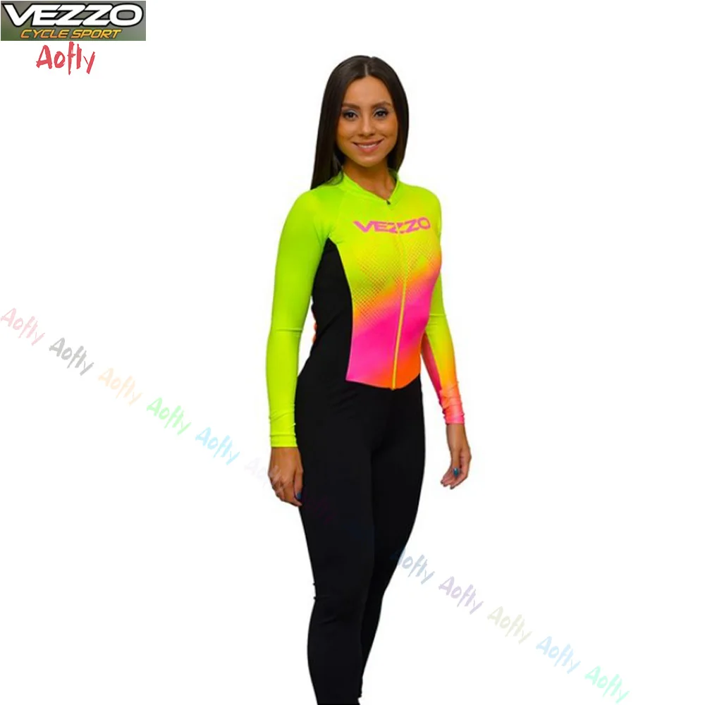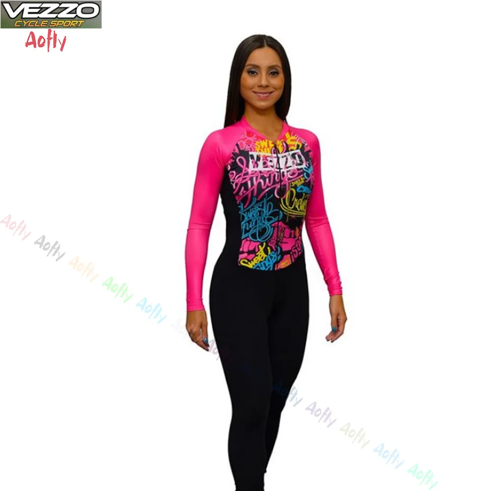 Женская длинная одежда для триатлона VEZZO, комплекты костюмов для велоспорта, Женский комплект для велоспорта, гелевый розовый комбинезон с подушечками, женские комплекты