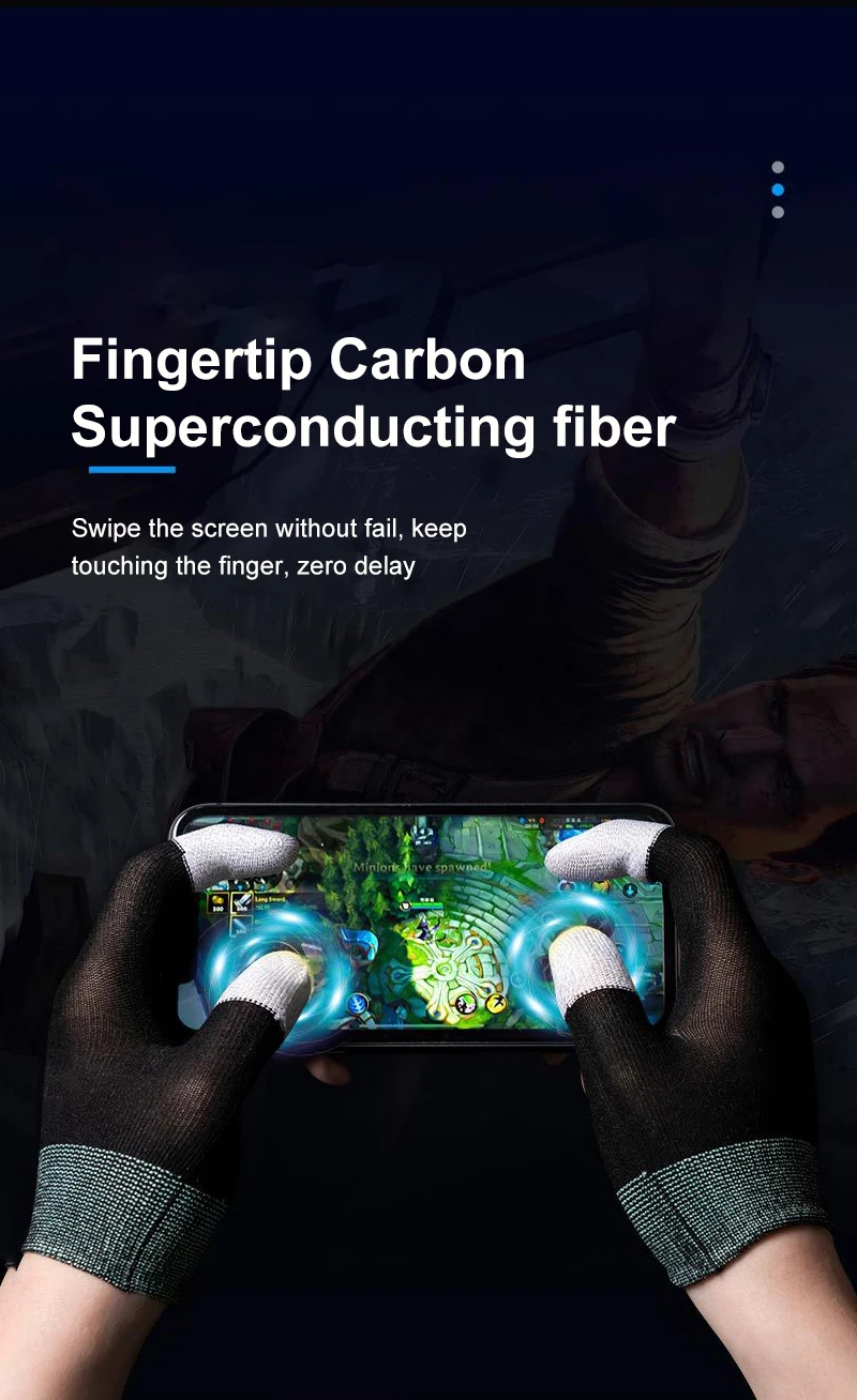 Используется высокомасштабное Серебряное волокно на пальцевой части, которое является сверхпроводящим, высокочувствительным и имеет опыт электронных видов спорта на кончиках пальцев.