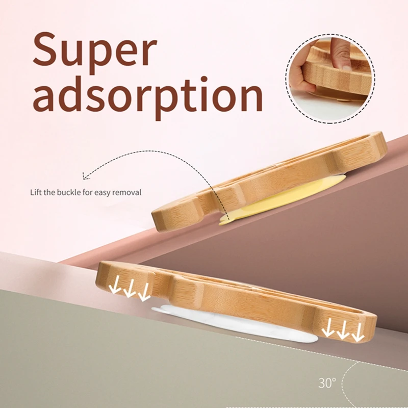 1 шт. милые бамбуковые тарелки для малышей с изображением слона, силиконовая присоска для кормления, нескользящая натуральная деревянная посуда без бисфенола