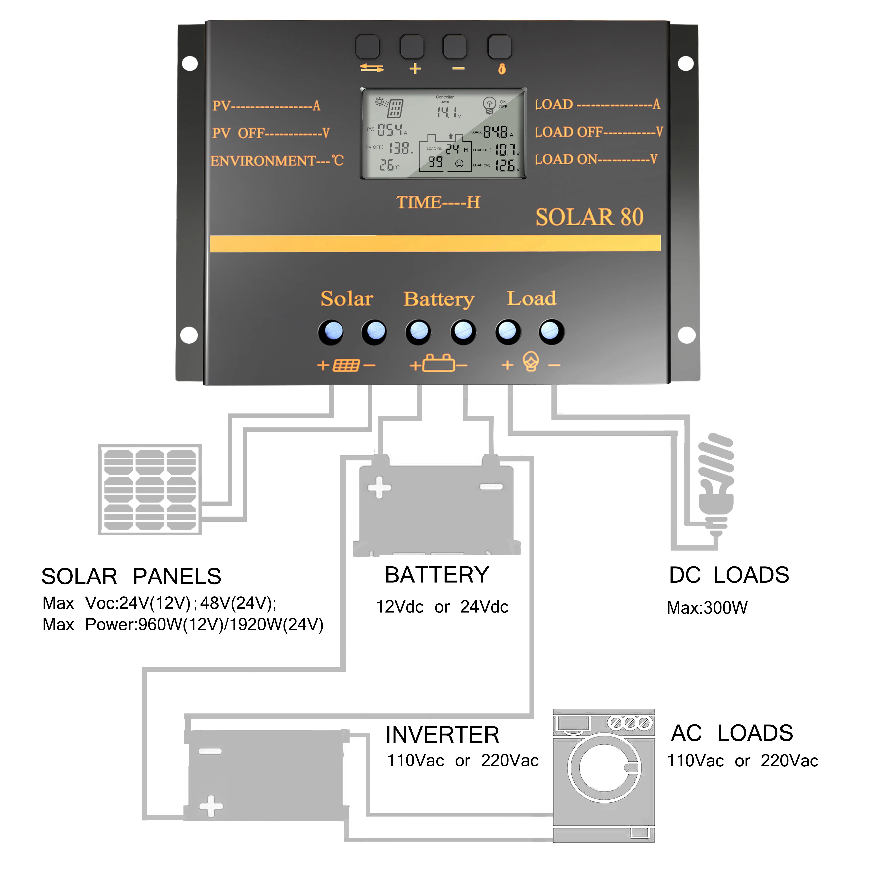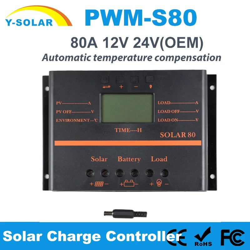 Контроллер заряда солнечной панели Y-Solar 80A, 12 В, 24 В, автоматическое зарядное устройство для солнечной батареи с ЖК-дисплеем, высокоэффективное зарядное устройство для солнечной батареи 80 ШИМ-регулятор