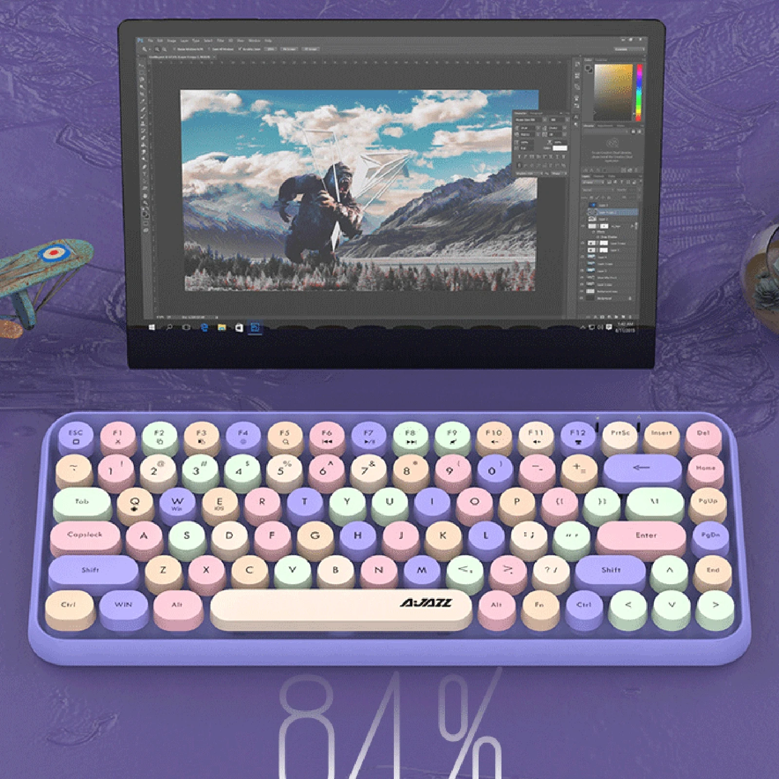 Беспроводная клавиатура Ajazz 308i BT, портативная мини-компактная ретро-клавиатура с круглой крышкой, 84 клавиши для ПК, ноутбуков, WiniOSAndroid
