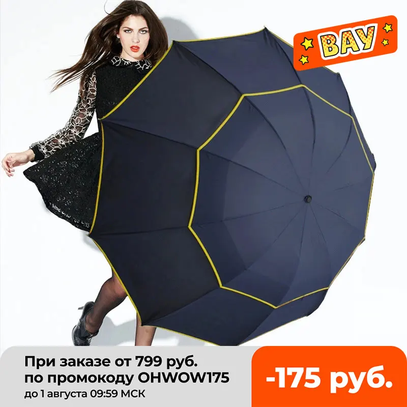 Большой двухслойный зонтик 130 см, мужской, женский, ветрозащитный,...
