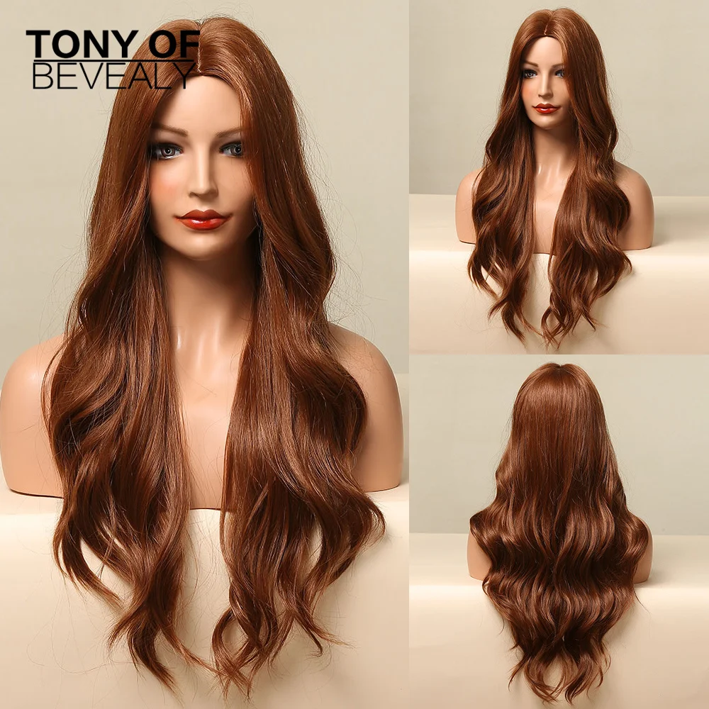 Медно-коричневый синтетический парик длинные волнистые волосы парик...