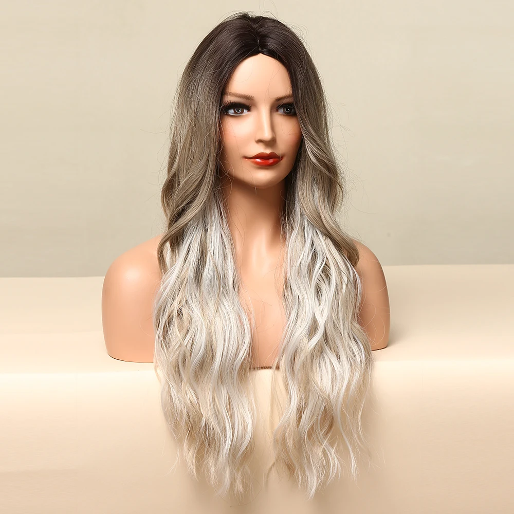 Длинные волнистые блонд Омбре волосы парики средняя часть темные корни синтетические парики для афро женщин Косплей натуральные парики термостойкие