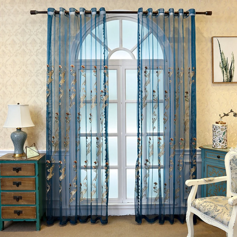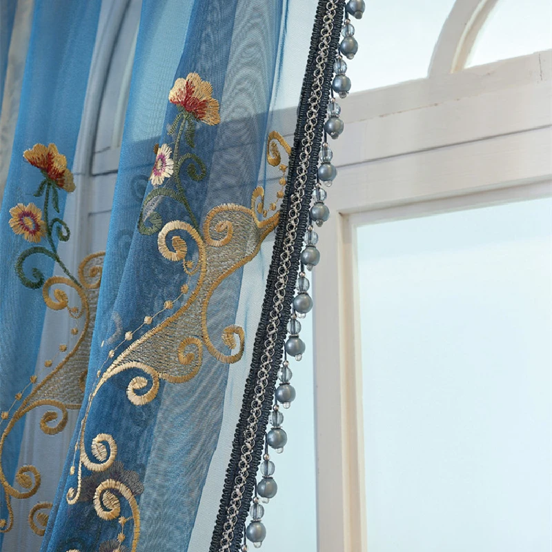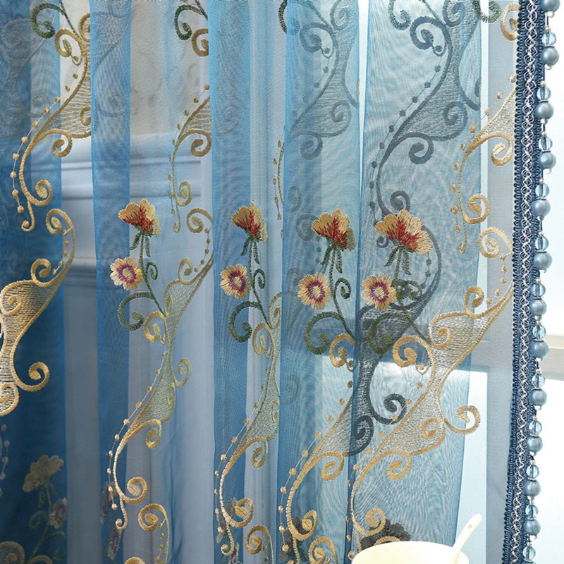 Роскошные тюлевые занавески принцессы для гостиной, спальни, оконные занавески, занавески с вышивкой для девочек, вуаль, занавески с бусинами