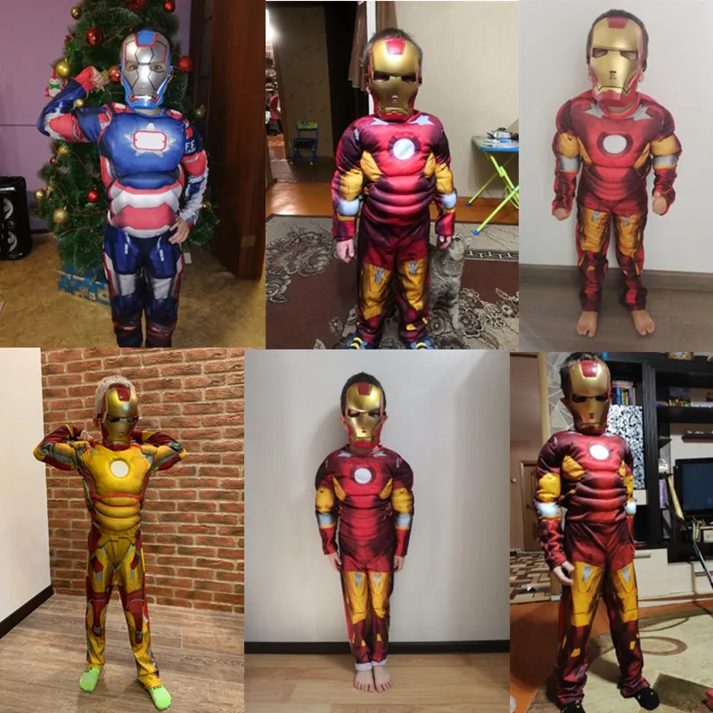 костюм железного человека безумный азарт косплей хэллоуин одКостюм супергероя Мстителей, ХалкЧеловек-паукКапитан АмерикаЖелезный человекВеном, Детский костюм для косплея, маска для вечеринки на Хэллоуин, комбинезон