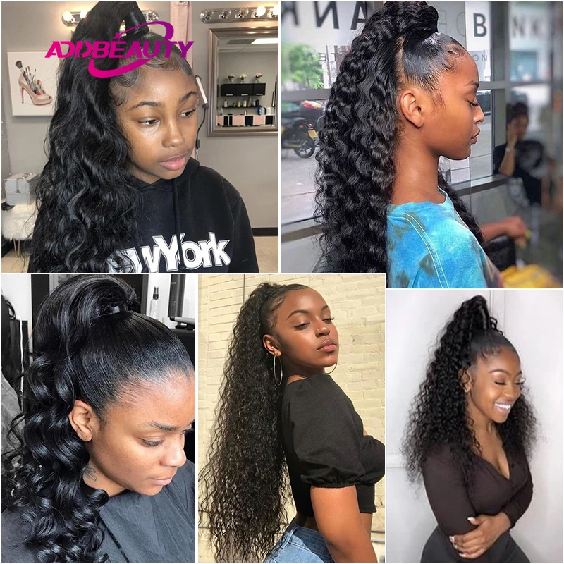 Натуральные волнистые конский хвост Remy человеческие волосы для наращивания