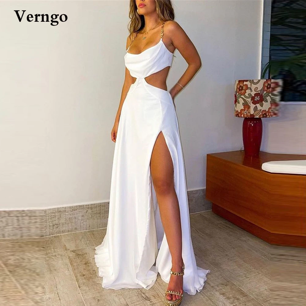 Длинное белое вечернее платье Verngo на бретельках, с вырезом на талии, с разрезом сбоку, формальное платье для вечеринки, Женские Простые платья для выпускного вечера, пляжная одежда