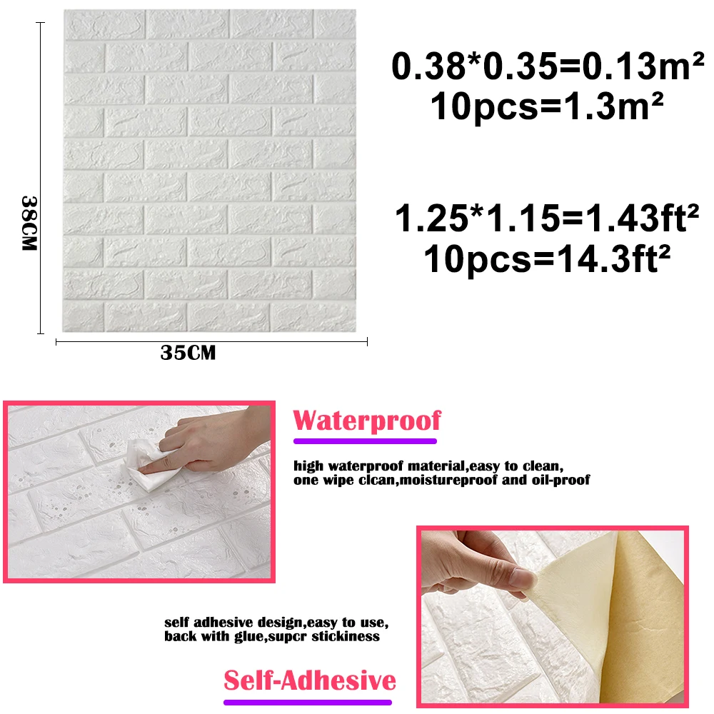 10 шт., водостойкие самоклеящиеся 3D-обои с имитацией кирпичной кладки, 38 х35 см