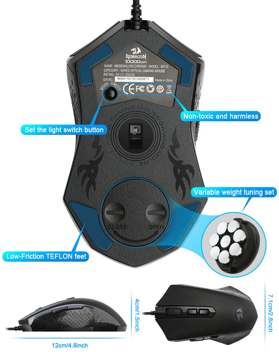 Мышь игровая Redragon CHROMA USB Проводная с RGB-подсветкой, 10000 DPI, 8 кнопок