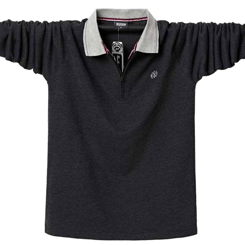 Размера плюс 6XL-L 2021, Мужская Однотонная рубашка-поло с длинным ...