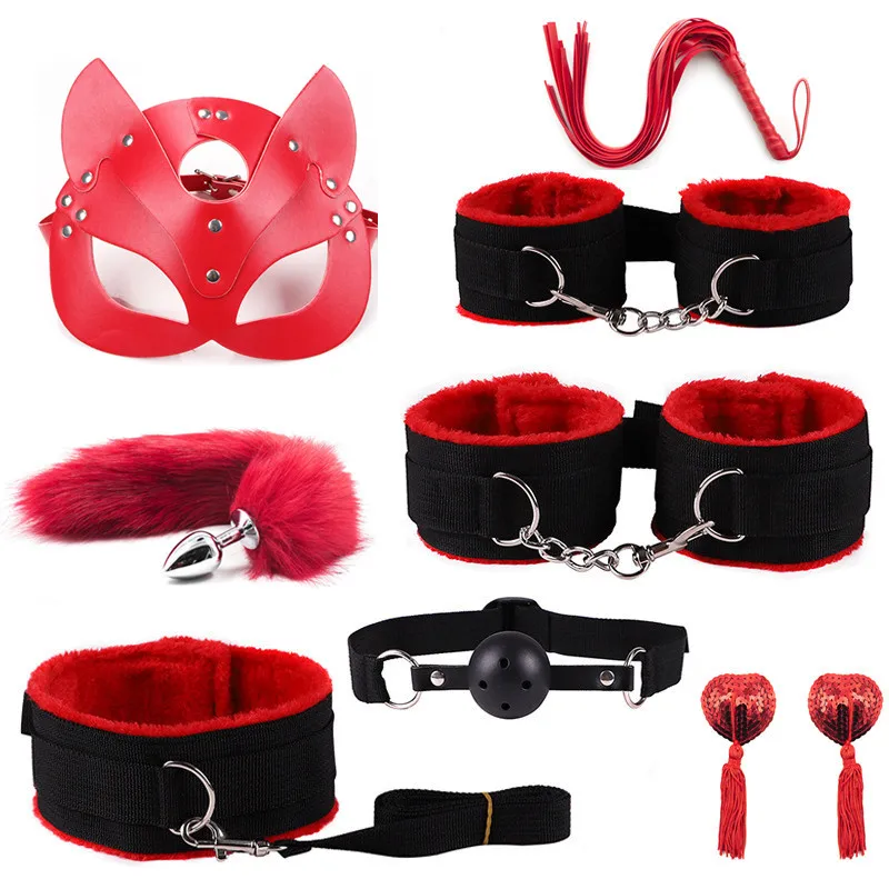 Эротическая маска кошки для женщин 40 см лисий хвост стимуляция Связывание нейлоновые плюшевые наручники БДСМ сексуальные наручники плетка металлическая Анальная пробка секс-игрушки