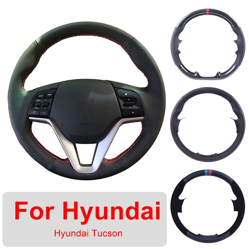 Плетеная оплетка для руля, для Hyundai Tucson 2015, чехол рулевого колеса автомобиля, Ручное шитье, 2016