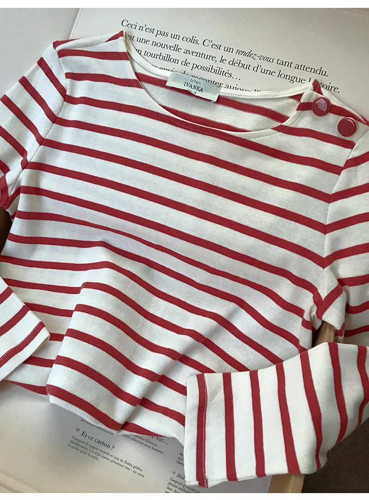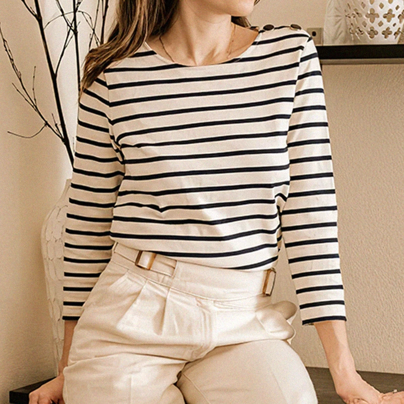 Женская хлопковая футболка в полоску, Повседневная Винтажная футболка с длинным рукавом и круглым вырезом, осень 2022