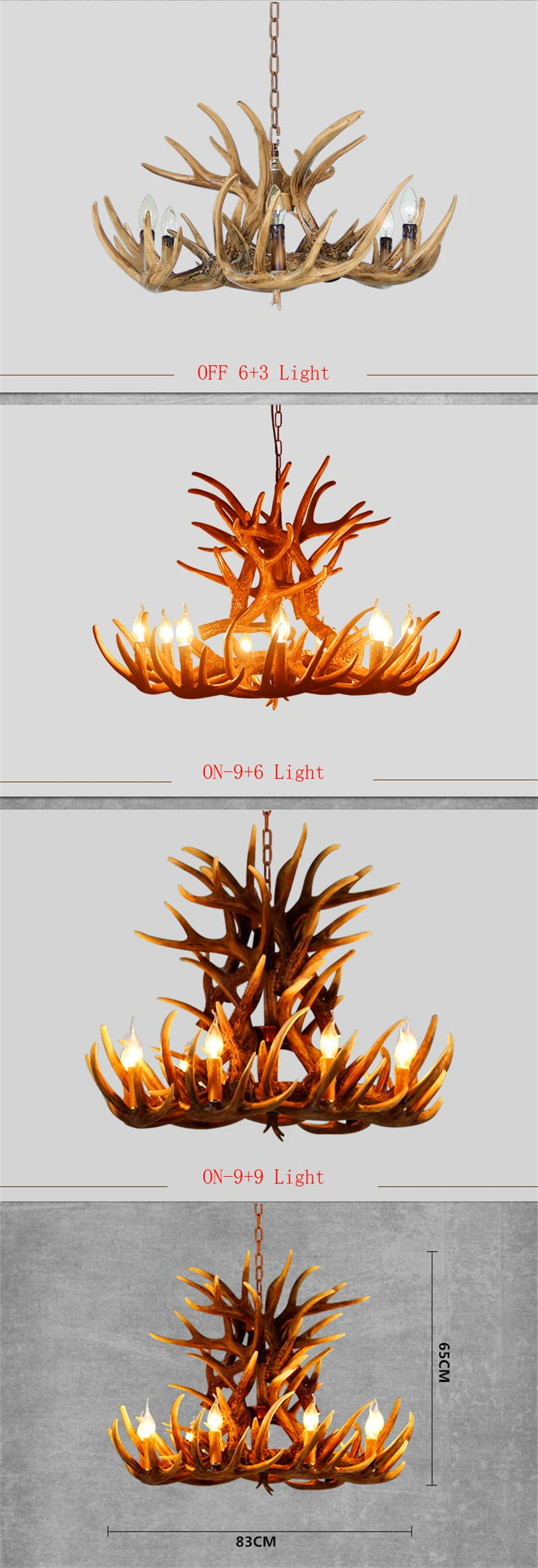 Nordic Candle Antler LED Люстра Освещение американский Ретро Смола ...
