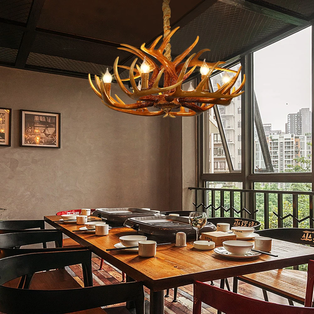 Американская люстра, винтажная люстра из экологичной смолы с рогами, гостиная, ресторан, промышленный интерьер, люстра в стиле лофт, освещение, подвесной светильник