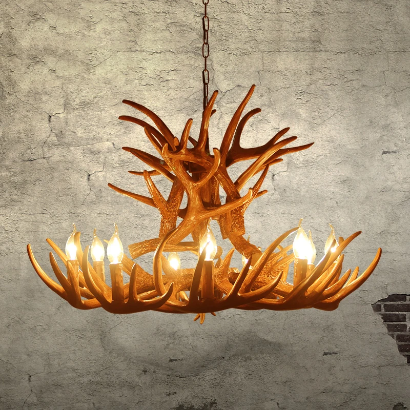 Люстра из смолы с оленьими рогами, лампочка Е14, американские ретро...