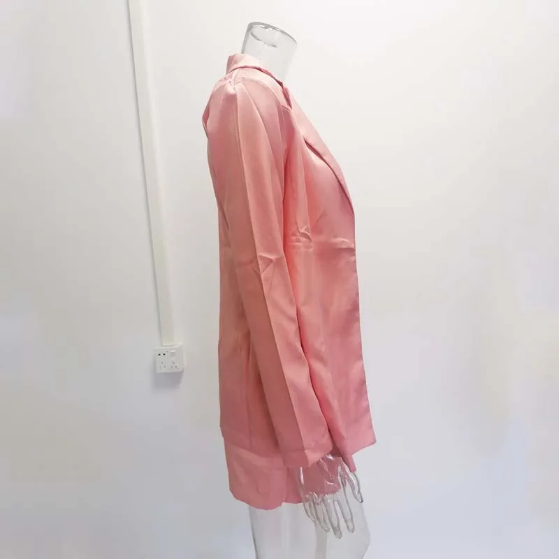 type1Women's suit 2021 ZA new pink lapel long sleeve
