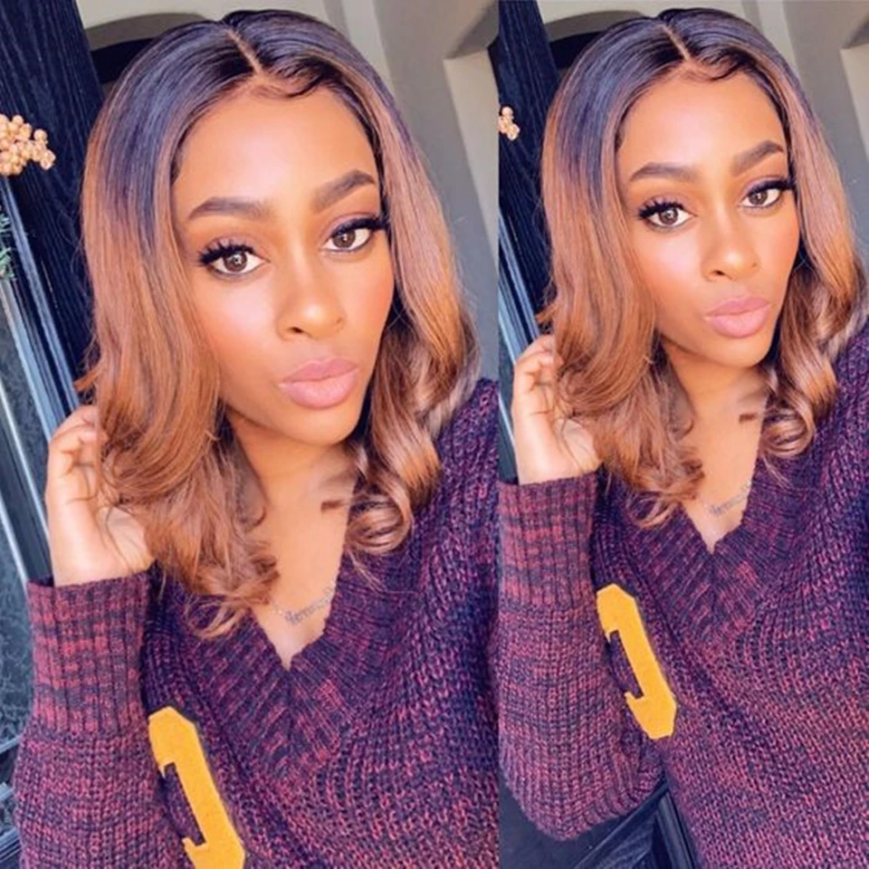 Короткий вьющийся парик Боб, парик с глубокой волной, T-образные па...