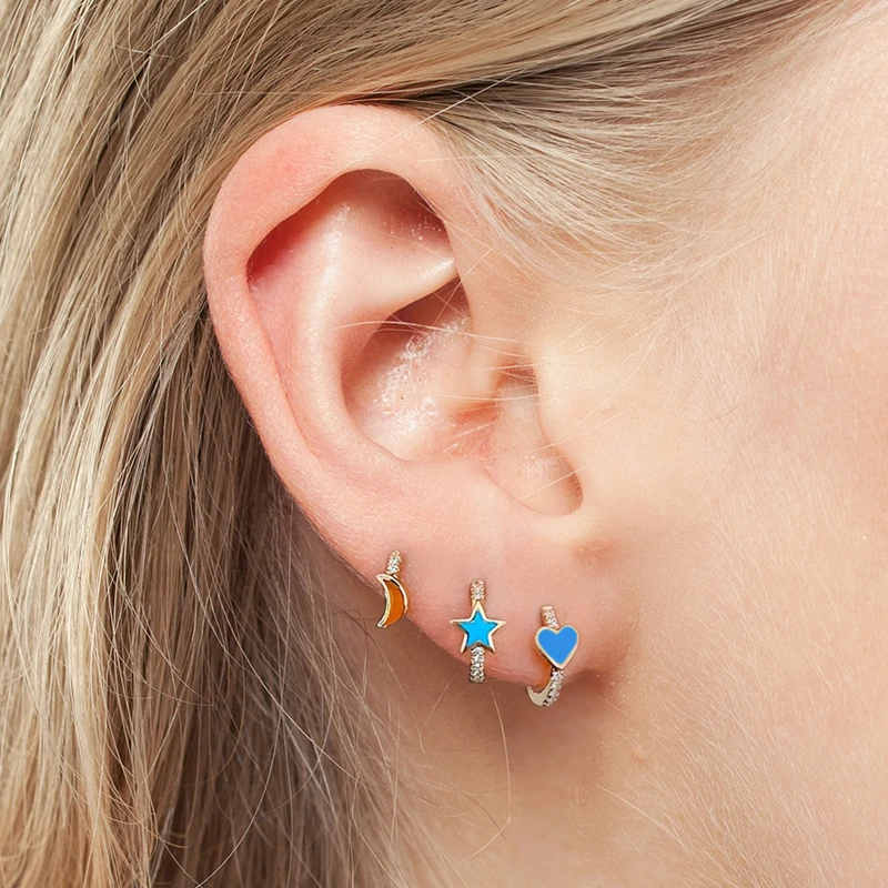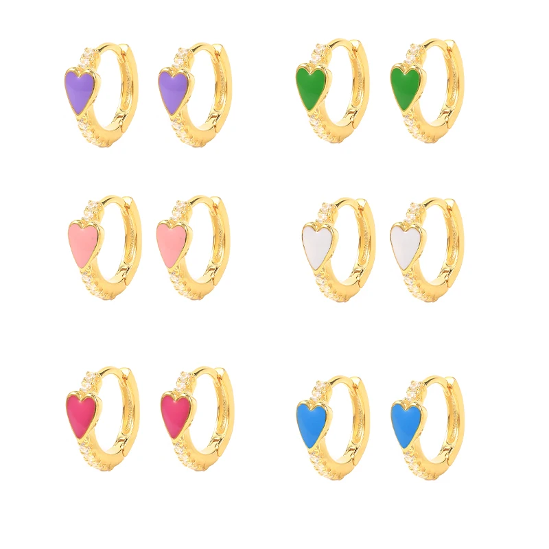 Женские серьги-кольца MC, из серебра 925 пробы, с эмалью, в Корейском стиле, с изображением сердца из серебра маленькая серьга-кольцо пробы